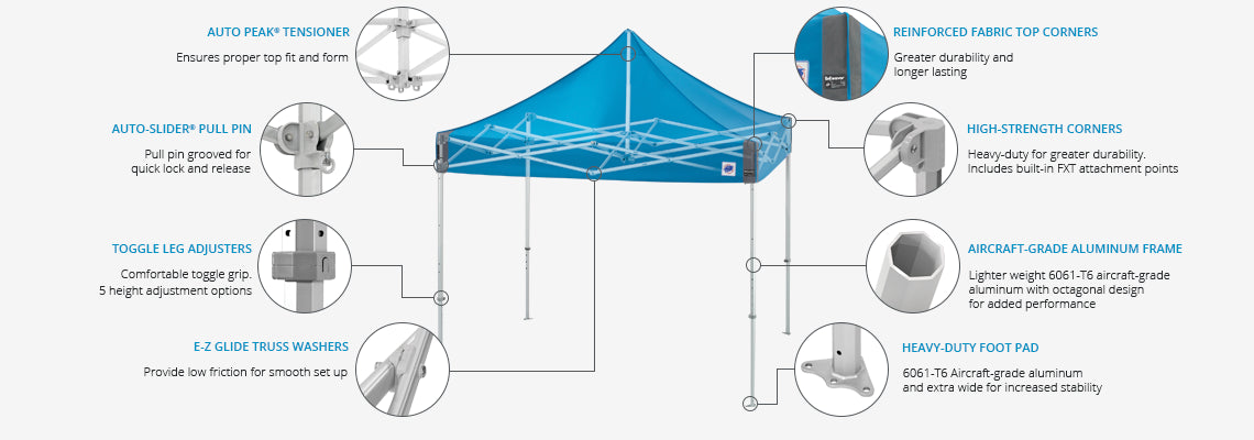 - Auto Peak® Tensioner - Ensures proper top fit and form. Includes built-in accessory hooks