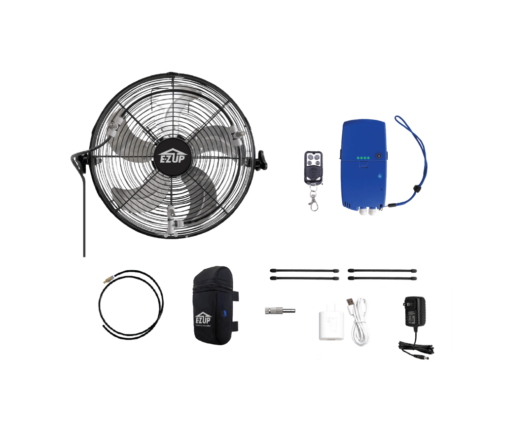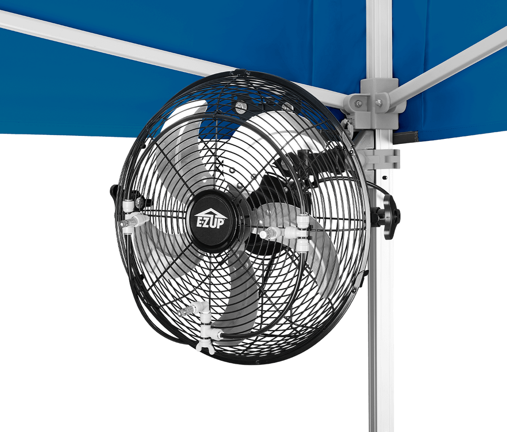 Part of the customizable E-Z Event System™ to enhance your canopy setup, the Misting Fan provides a more comfortable outdoor environment effortlessly.